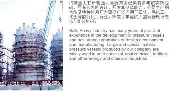 蘇州海陸重工股份有限公司位于江蘇省張家港市開發(fā)區(qū),是國內(nèi)一流的節(jié)能環(huán)保設(shè)備的專業(yè)設(shè)計制造企業(yè),目前并已初步形成鍋爐產(chǎn)品、大型壓力容器、核電設(shè)備、低溫產(chǎn)品、環(huán)保工程共同發(fā)展的業(yè)務(wù)格局。公司創(chuàng)建于1956年,注冊資本51640萬元,占地面積近50萬平米。公司下設(shè)八個控股子公司,一個余熱鍋爐研究所,在瑞士、北京、武漢、南京、上海、杭州、廣州等地設(shè)立分支機(jī)構(gòu),擁有雄厚的研發(fā)實(shí)力。公司秉承“科技領(lǐng)航、業(yè)界先鋒”的發(fā)展理念,注重研究廢熱、余熱利用和環(huán)境保護(hù)相結(jié)合的新技術(shù)研發(fā),自主設(shè)計能力居同行前列;公司承擔(dān)過國家863計劃,江蘇省科技成果轉(zhuǎn)化專項資金,榮獲國家科技進(jìn)步二等獎,產(chǎn)品擁有核心自主知識產(chǎn)權(quán)并取得專利50多項;公司推行國際先進(jìn)的管理體系標(biāo)準(zhǔn)和認(rèn)證,擁有 A級鍋爐制造許可證,A1、A2、A3級壓力容器設(shè)計和制造許可證,取得了民用核承壓設(shè)備制造資格許可證、美國機(jī)械工程師學(xué)會(ASME)“S”、“U”鋼印,通過了ISO9001質(zhì)量體系認(rèn)證、健康體系認(rèn)證和14000環(huán)境體系認(rèn)證;公司設(shè)備先進(jìn),裝備精良,專業(yè)嚴(yán)謹(jǐn)?shù)闹圃炖砟畲蛟斐銎焚|(zhì)非凡、質(zhì)量一流的“海陸”品牌聲譽(yù)。